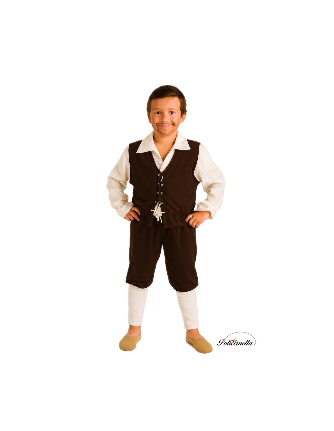 Este lindo traje é composto por uma camisa feita em um touple, embora poliéster macio com cordas nos pulsos para ajustar as mangas. O colete é feito de um tecido de toque amelocombado, com fechamento frontal por cordão e borracha para a cintura para um efeito de Abround. A calça é do mesmo tecido que o colete, com borracha para a cintura e cordas na altura do joelho, como foi característico do tempo e finalmente, espinhas para os tornozelos.