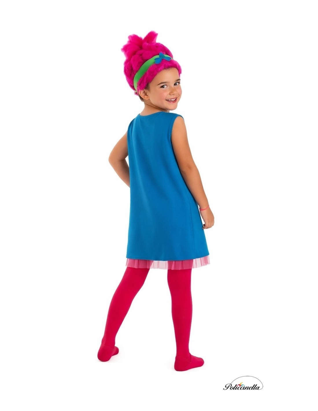Este disfarce de troll para menina foi desenhado com grande cuidado em cada detalhe, oferecendo qualidade, conforto e fantasia numa única peça. O vestido, confeccionado em suave malha semi-elástica, apresenta mangas delicadas e babados de tule, enquanto a parte inferior é decorada com pétalas de feltro que proporcionam um toque mágico e divertido. No peito, uma peça decorativa completa o design com encanto. O fecho no pescoço, com velcro atrás, garante um ajuste prático e confortável. A peça principal é o gorro-peruca: elaborado sobre uma base espumada para manter a forma, está coberto com tecido de toque aveludado em um alegre rosa chiclete, coroado com uma faixa de feltro e uma flor na frente. Um disfarce macio, resistente e cheio de cor, ideal para brilhar no Carnaval e em festas temáticas.