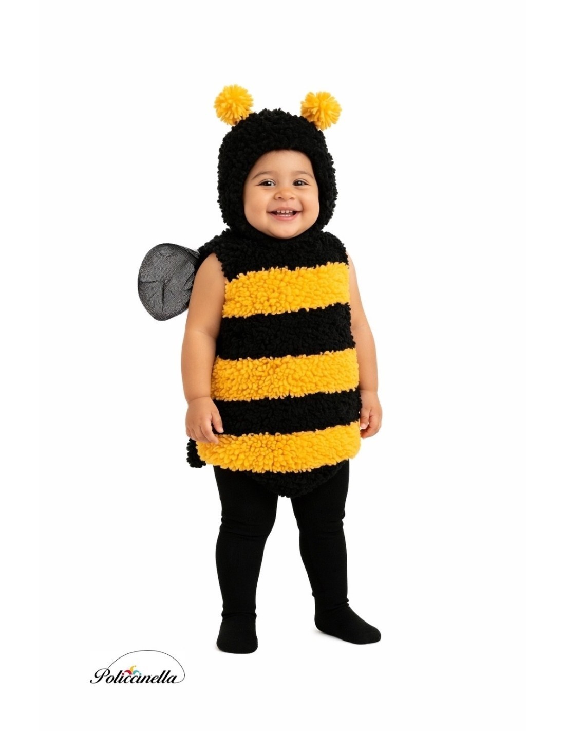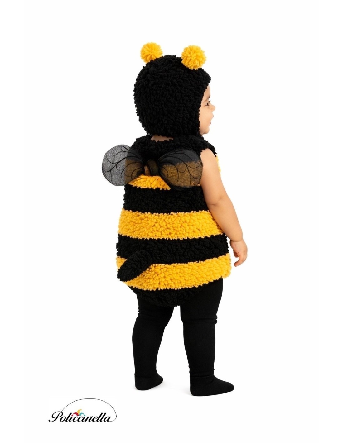 Doçura e conforto se unem neste encantador disfarce de abelhinha, feito em tecido de veludo macio e com forro interno para maior conforto. Possui fecho de velcro no pescoço até a cintura para vesti-lo com facilidade, e fecho de velcro no gorro no pescoço para um ajuste perfeito. Destaca-se especialmente a fralda pela sua comodidade, já que possui uma abertura prática com clips que facilita a troca de fralda ou as idas ao banheiro. Inclui cauda no mesmo tecido e asas costuradas nas costas de tule macio, além de gorro com antenas combinando. Ideal para desfrutar com total liberdade e ternura.