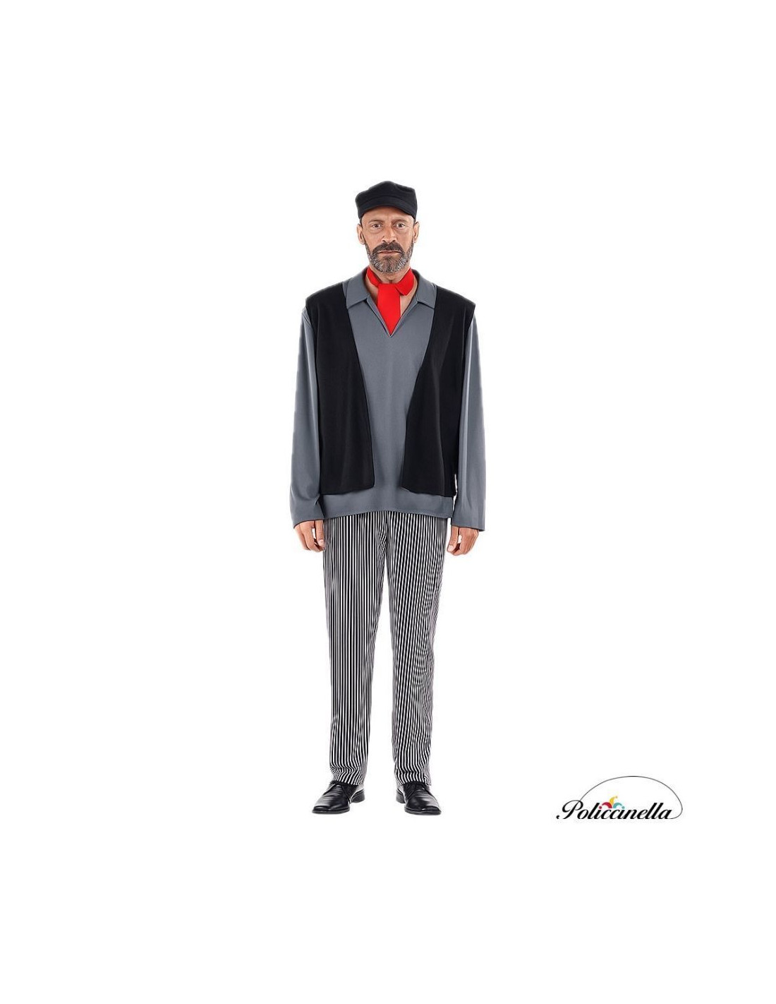 O traje da prisão é composto por uma camiseta listrada em preto e branco, feita de um bom toucador de poliéster, que fecha em torno de um sistema de velcro. É complementado por uma calça do mesmo material e estampado que a camisa, incorporando um bolso interno e uma borracha elástica na cintura para melhor ajuste. O conjunto é concluído com um chapéu do...