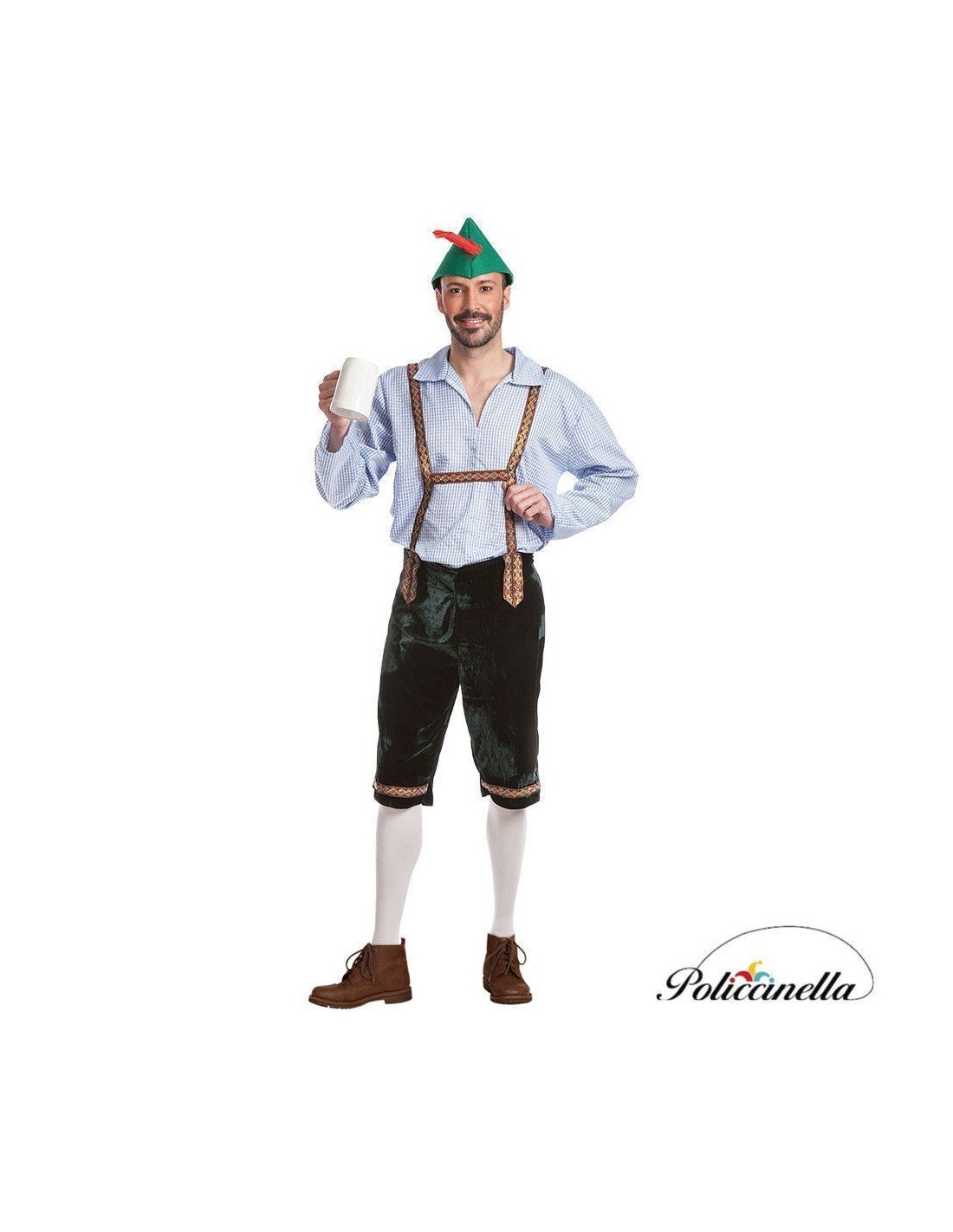 Este traje tradicional é composto por uma camisa longa feita de poliéster espesso, uma calça de veludo macio com suspensórios elaborados com uma fita decorativa de motivos coloridos, a mesma que foi usada para enfeitar a parte inferior da calça na frente, e o chapéu característico que representa o personagem, feito de um tecido espesso e um filtro firme para manter sua estrutura e forma. Este chapéu é decorado com uma pena lateral.