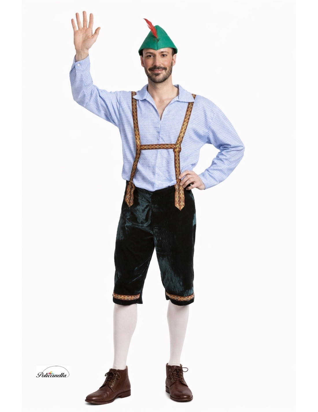 Este traje tradicional é composto por uma camisa longa feita de poliéster grosso, uma calça de veludo suave com suspensórios elaborados com uma fita decorativa de motivos coloridos, a mesma que foi usada para enfeitar a parte inferior da calça na frente, e o característico chapéu que representa o personagem, feito de um tecido grosso e um filtro firme para manter sua estrutura e forma. Este chapéu é decorado com uma pena lateral.