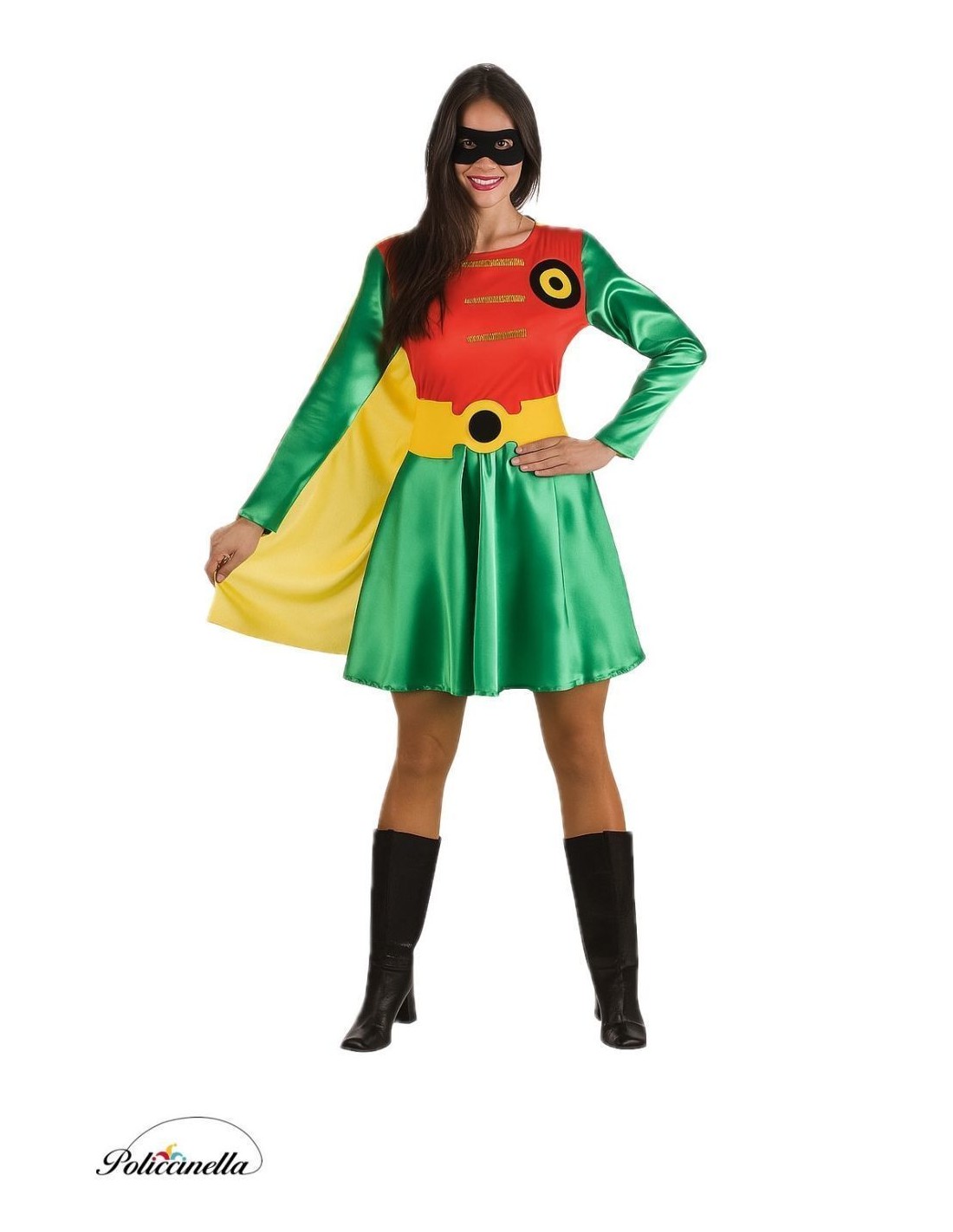 O vestido combina conforto e estilo, com um corpo em malha semi-elástica suave que se ajusta com velcro no pescoço e elástico na cintura para maior conforto. Decorado com uma peça de feltro consistente e fita dourada que realçam o seu design. As mangas e a saia, em cetim delicado, proporcionam brilho e movimento, enquanto dos ombros cai uma capa no mesmo tecido do corpo, facilmente ajustável com velcro. Por fim, incluem-se umas caneleiras de botas e um cinto ajustável atrás com velcro, ambas peças estruturadas, para oferecer estrutura e forma. Um conjunto confortável e cheio de encanto!