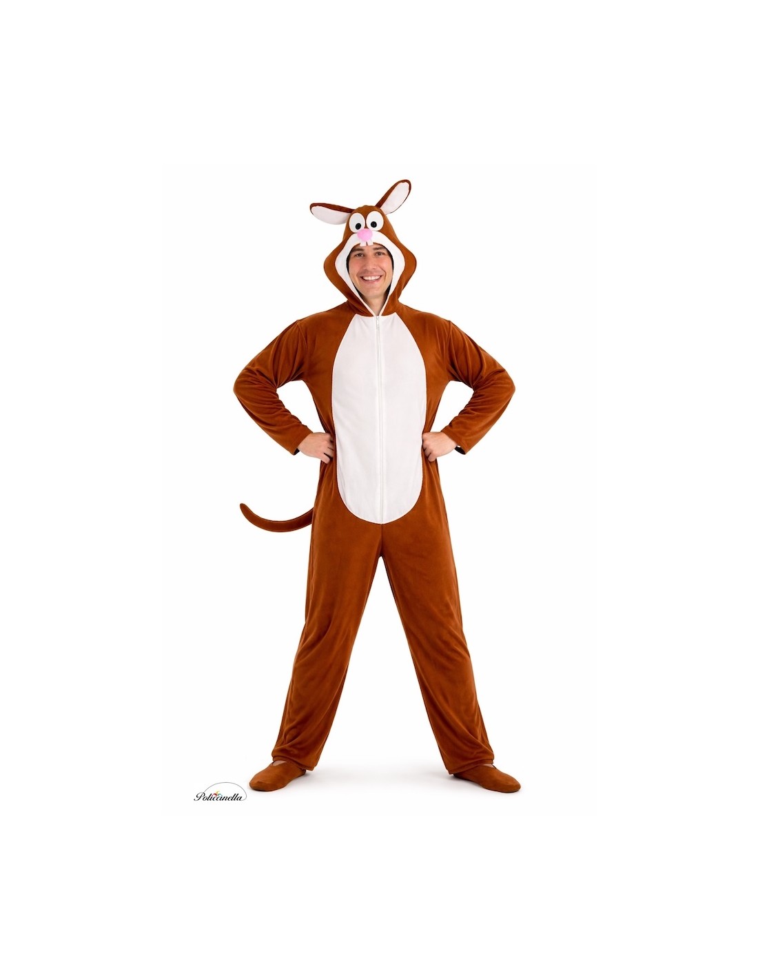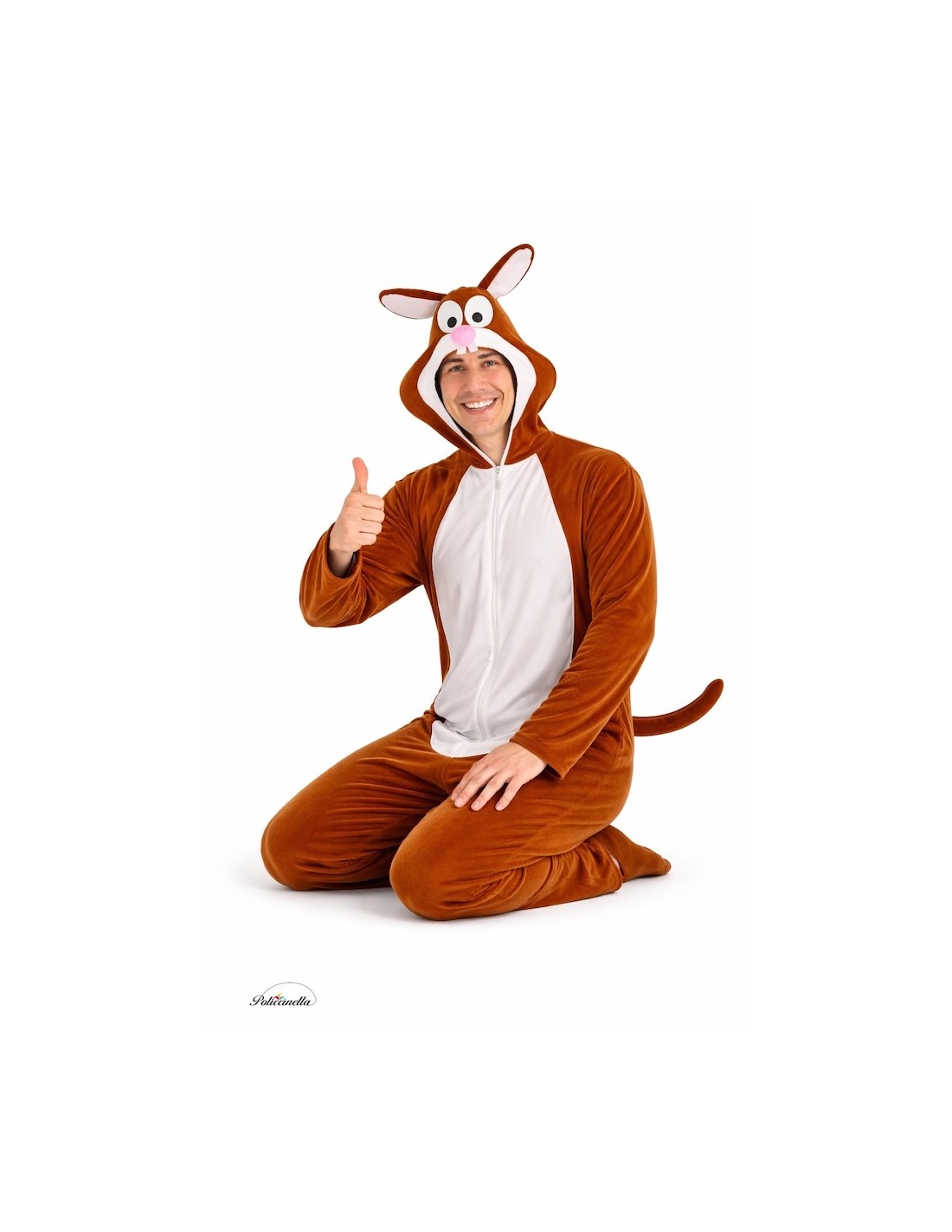 Fantasia de coelho doce e divertida, com macacão de corpo inteiro feito de poliéster com toque aveludado e zíper invisível na frente. O capuz integrado, com espuma para manter sua forma, tem olhos e dentes de feltro denso, orelhas com enchimento rígido para que fiquem eretas e um nariz macio e peludo preso ao tecido. Na parte de trás, um pom-pom fofo simula o característico rabinho de coelho. Leve, confortável e cheio de charme.