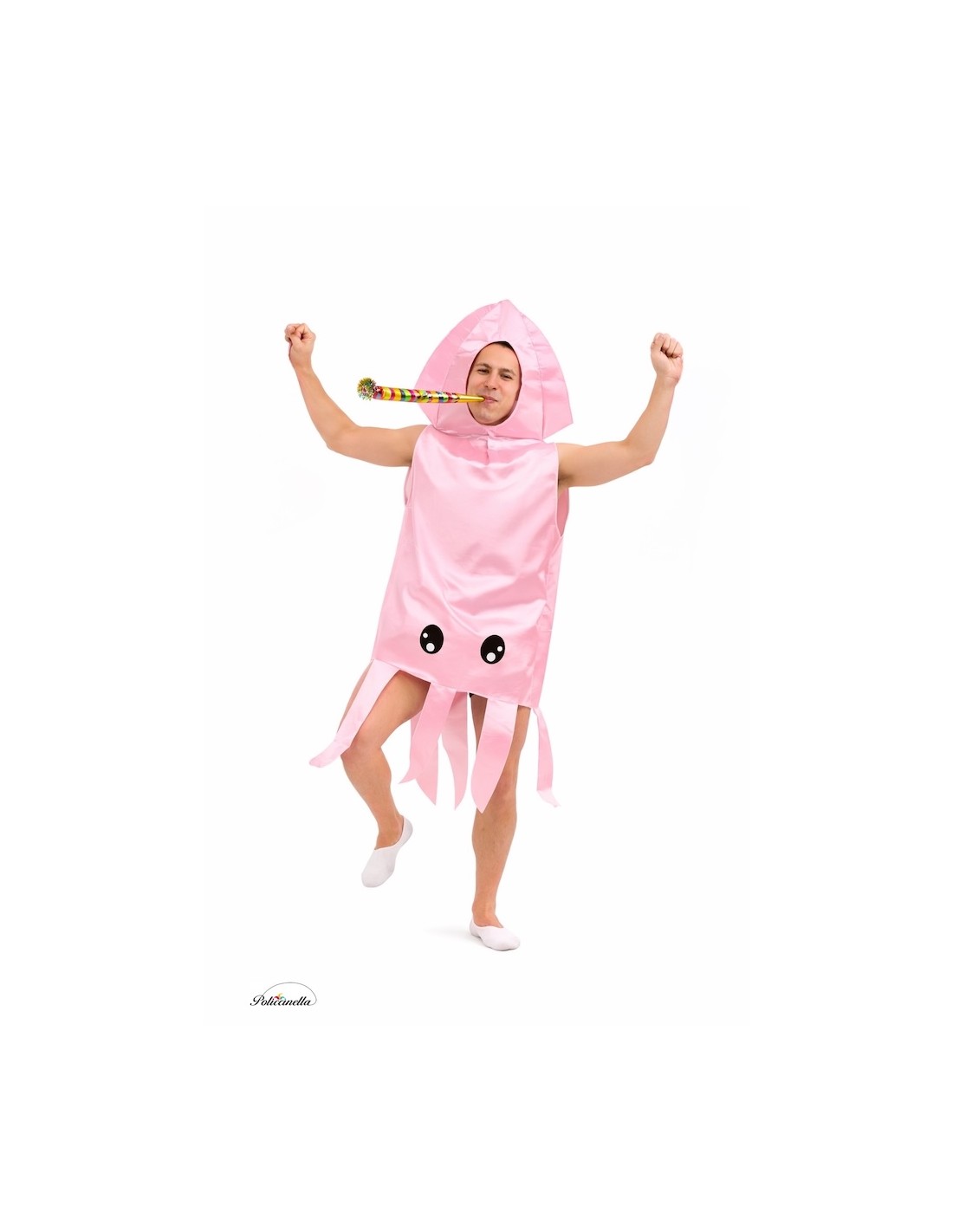 Fantasia original de corpo inteiro de lula, com capuz integrado e estrutura em cetim espumado que mantém sua forma. Os detalhes em feltro denso dão um toque realista e divertido. Inclui amplas aberturas laterais para os braços e fecho de velcro nas costas para facilitar a colocação e remoção. Da cintura para baixo, seu tecido de malha semielástico proporciona leveza e conforto.