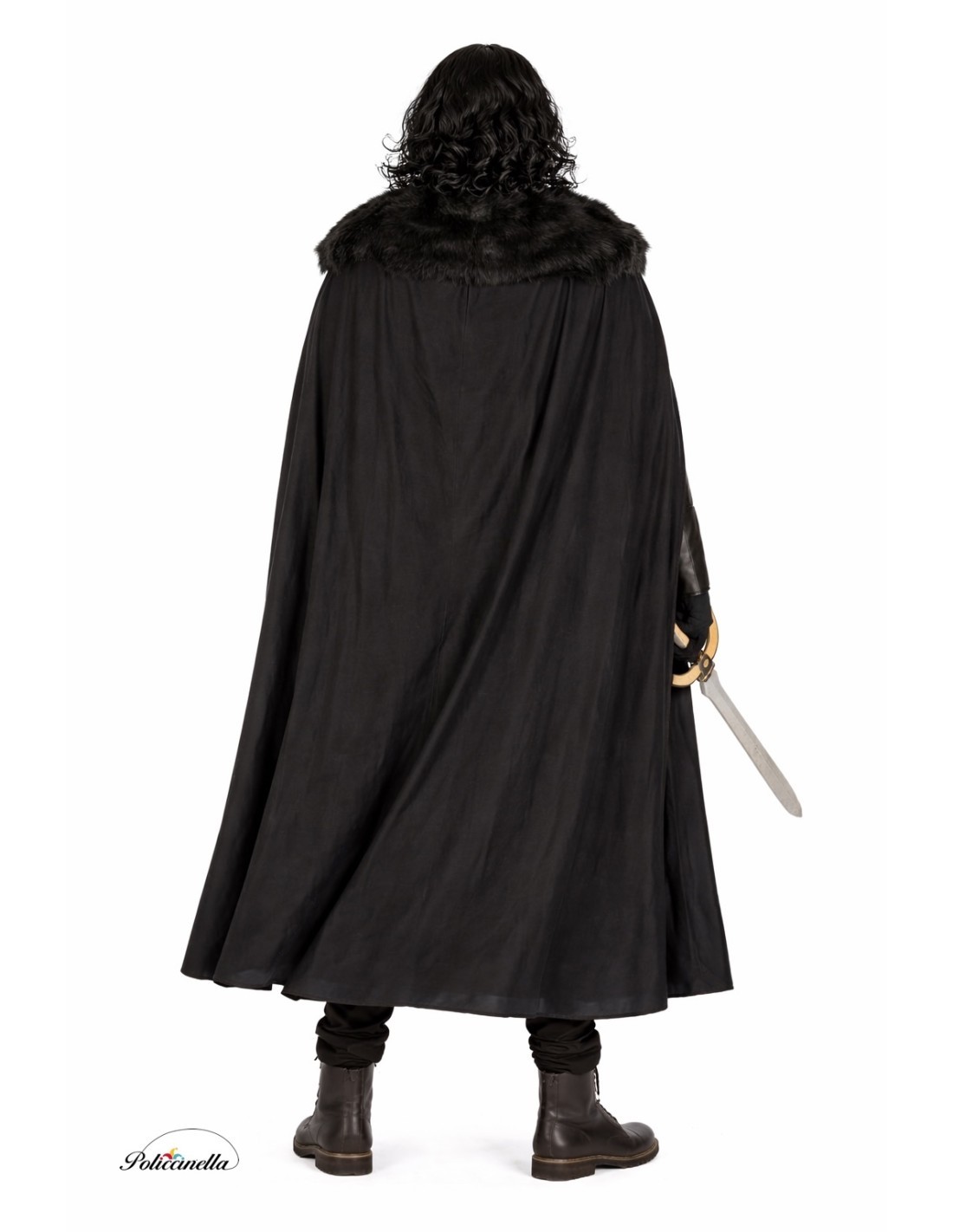 Fantasia de guerreiro medieval composta por camisa, calças, capa e cinto, confeccionada em tecido de malha para maior conforto e mobilidade. A camisa de mangas compridas possui fecho de velcro no pescoço. As calças têm cintura elástica e bolso interior funcional. A capa inclui gola de pelo sintético de alta densidade e fecho frontal com tiras cruzadas de poliéster semelhante a couro e fivelas plásticas decorativas. O cinto, reforçado com feltro, ajusta-se com velcro. Design técnico, leve e versátil.