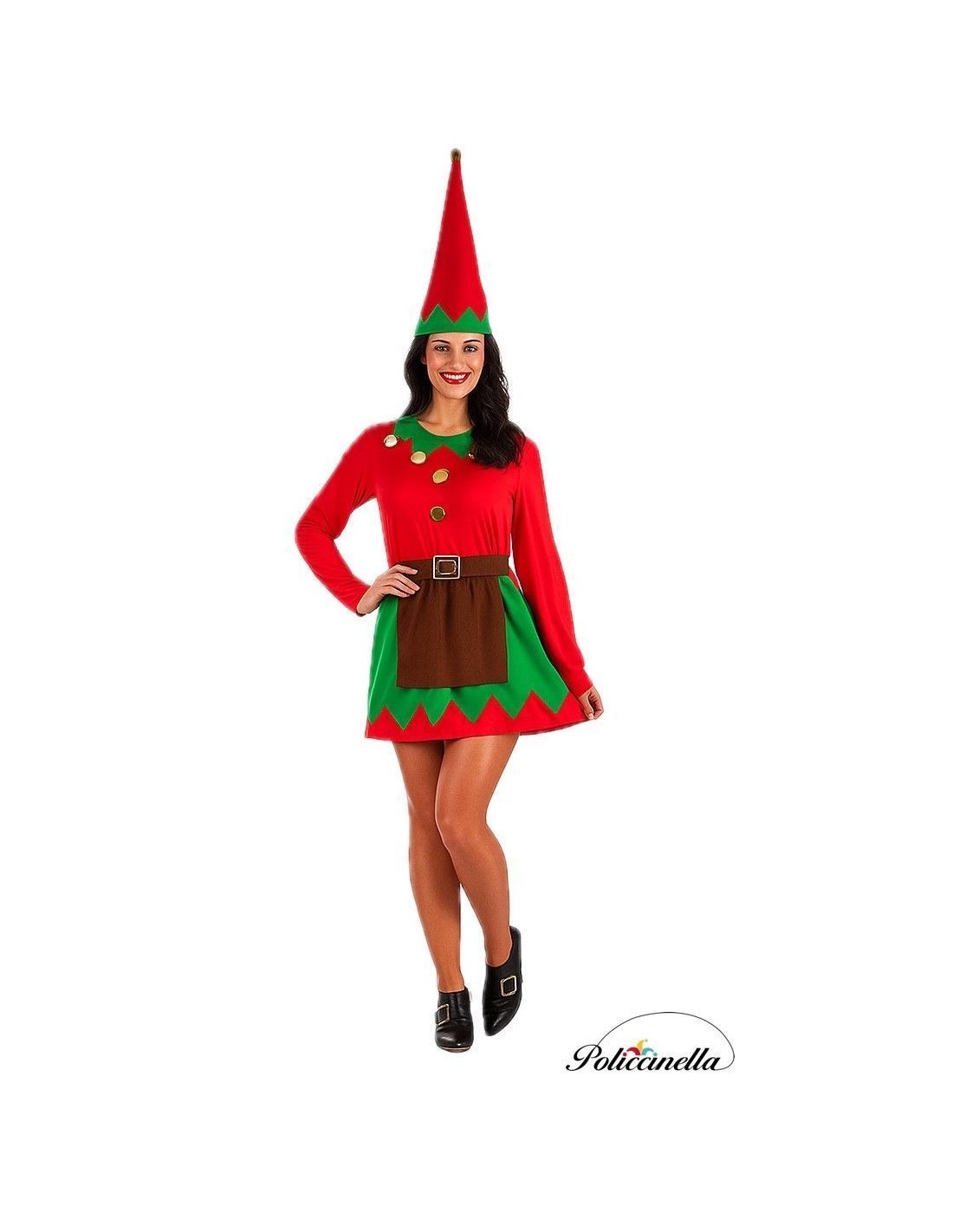 Vestido encantador em malha de máquina semi-elástica, suave ao toque e com cintura franzida para um ajuste favorável. Gola e saia em textura aveludada, decoradas com aplicações douradas em forma de botão que acrescentam um toque brilhante e festivo. O avental marrom, costurado na saia, adiciona um toque tradicional ao design. Inclui cinto de feltro com fivela dourada fofa e fecho de velcro, e um gorro em forma cônica com acabamento aveludado e um adorno dourado na ponta. Um conjunto de alta qualidade para uma elfa inesquecível.