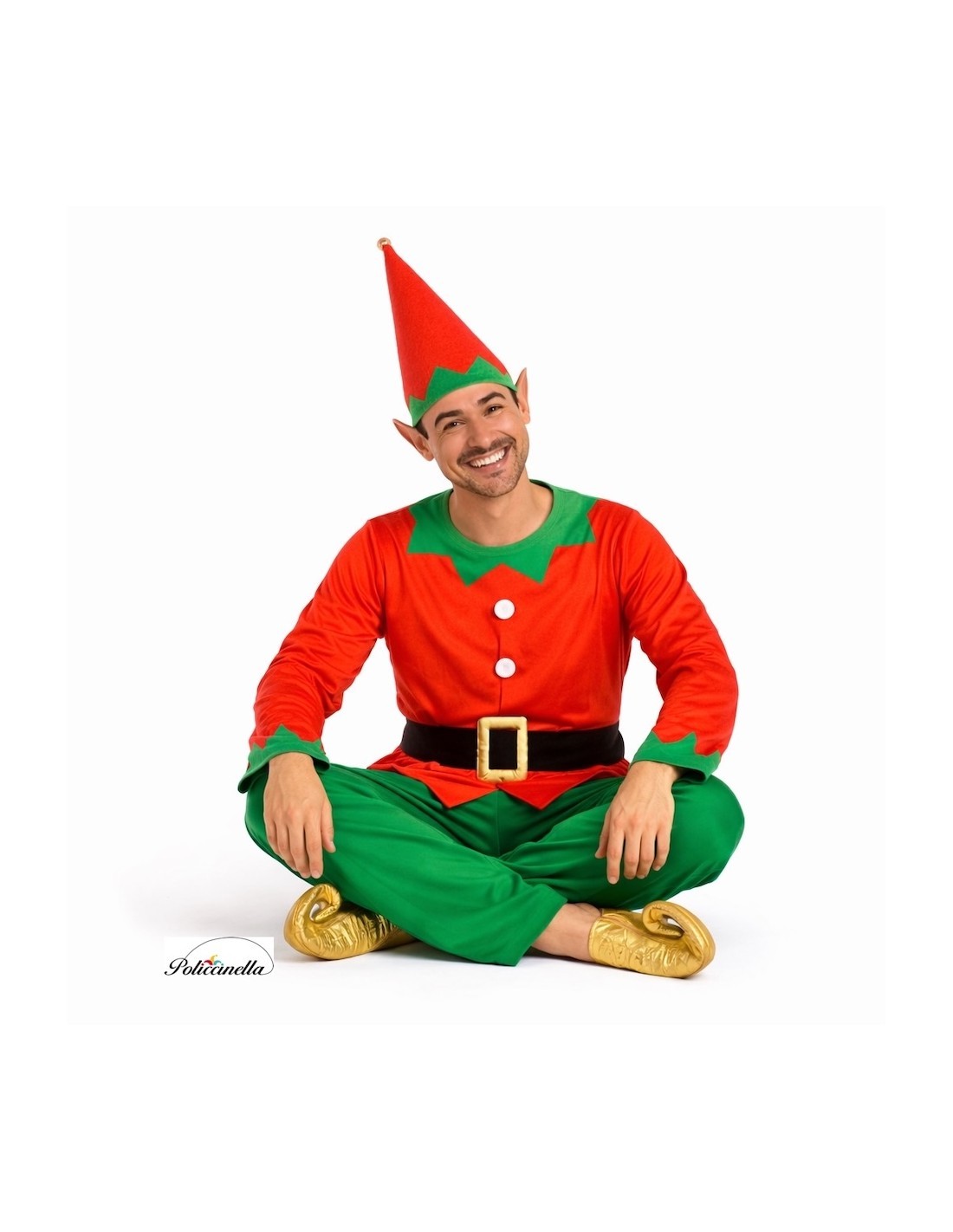 Conjunto colorido composto por uma camisa de malha macia semielástica, com gola e punhos de toque aveludado e peças douradas decorativas aplicadas na peça. Fecho traseiro com velcro para maior conforto. Calças verdes com textura aveludada, cintura elástica e pequeno bolso interno. O icónico chapéu, feito de feltro espesso com acabamento verde e ponta dourada, adiciona um toque festivo e alegre. Inclui cinto de feltro com fecho de velcro e fivela dourada. Perfeito para exibir charme e alegria natalícia.