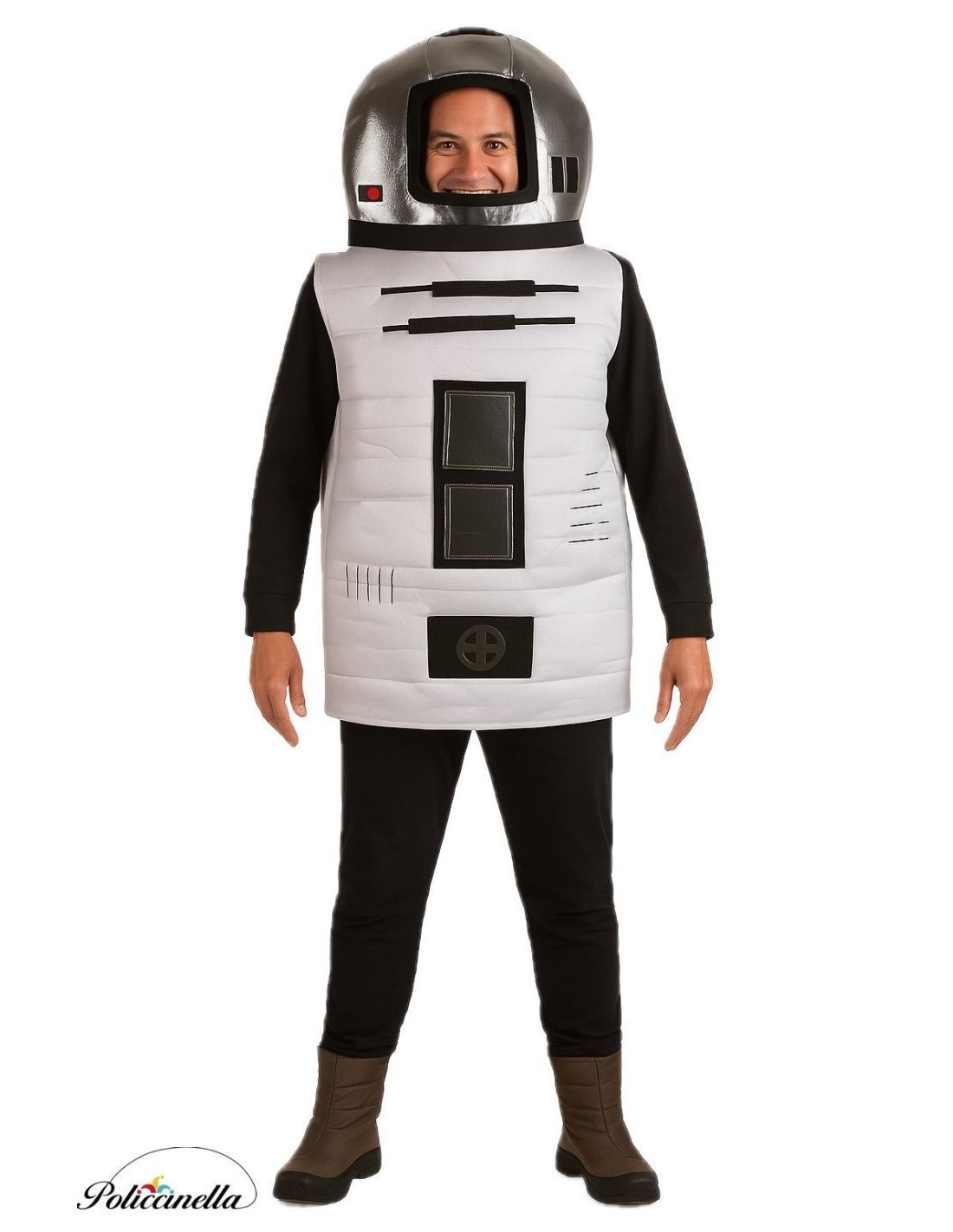 Surpreenda no Carnaval e em festas temáticas com esta fantasia original de robô. Confeccionada em uma única peça de corpo inteiro espumada em ambas as faces, mantém sua estrutura firme sem perder conforto. A peça inclui capuz integrado e é revestida com um suave cetim, proporcionando um acabamento brilhante e chamativo. Os apliques decorativos frontais são projetados sobre a própria base espumada, criando um efeito tridimensional realista que acentua a estética robótica. Apesar de sua aparência volumosa, a fantasia é leve, confortável e fácil de usar, ideal para se destacar em desfiles, espetáculos e celebrações.