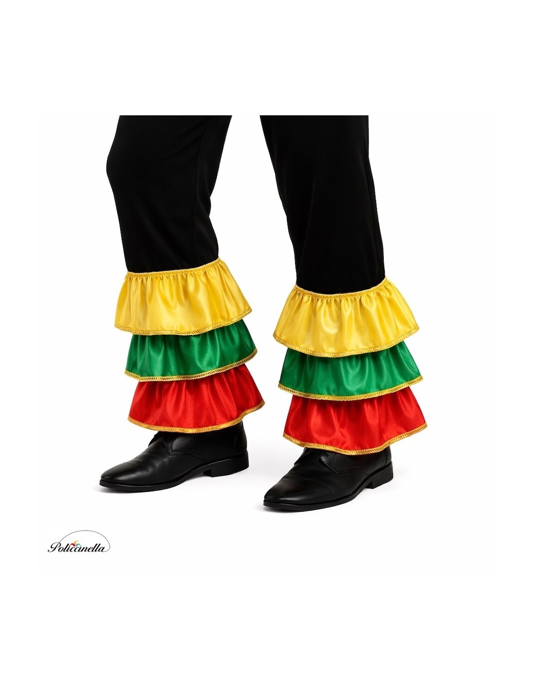 Encante com ritmo e cor com esta alegre fantasia de rumbero para adultos. Inclui uma camisa em malha semi-elástica, leve e confortável, com mangas decoradas com babados de vibrante cetim multicolorido, finalizados com fitas douradas. As calças, a condizer, com elástico na cintura e pequeno bolso interior, repetem a mesma decoração nas pernas, criando um conjunto harmonioso e vistoso. Ideal para desfiles, performances, festas temáticas ou qualquer celebração que exija movimento, energia e estilo tropical.