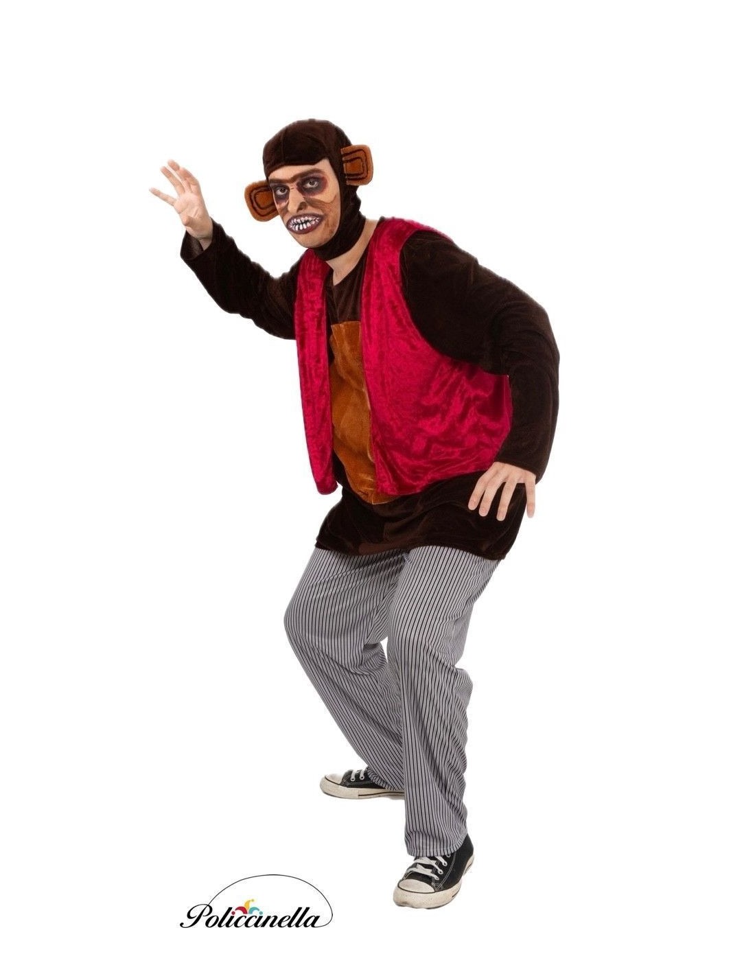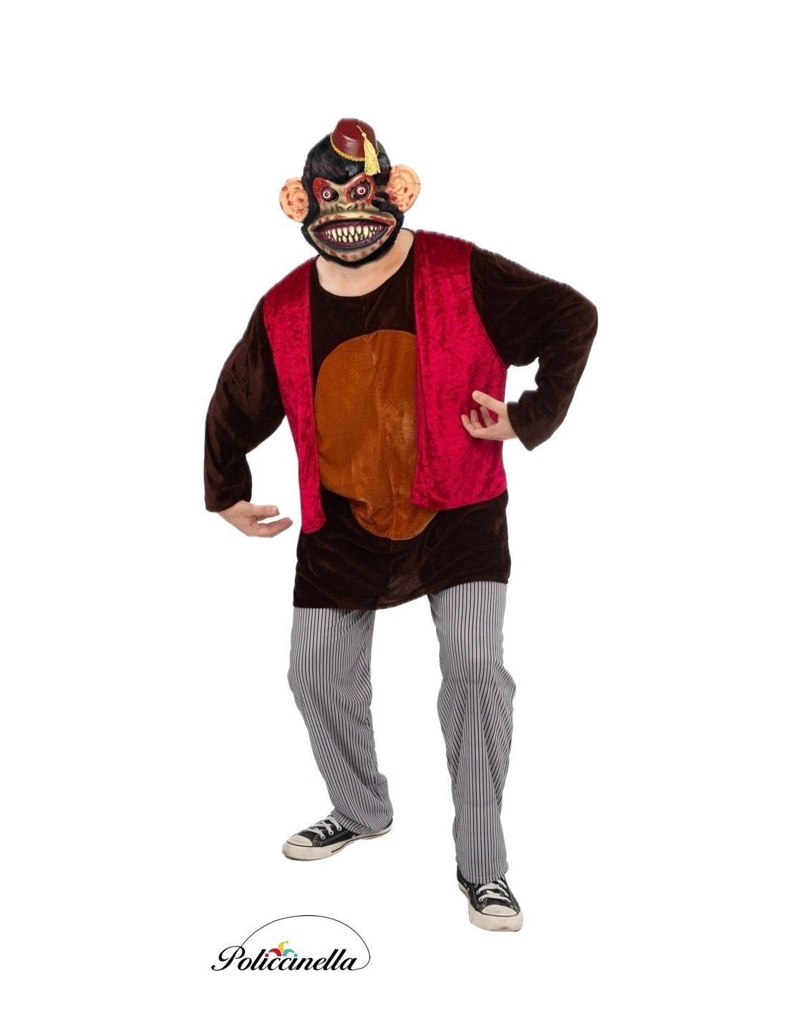 Inquietante e sofisticada, esta fantasia recria com fidelidade o sinistro macaco. Inclui capuz de veludo com orelhas integradas, camiseta com fecho de velcro no pescoço, colete de veludo macio e calça de malha com cintura elástica e bolso interno. Cada detalhe evoca a perturbadora presença do macaco assassino, sendo ideal para quem procura uma roupa impactante, confortável e carregada de tensão cinematográfica.