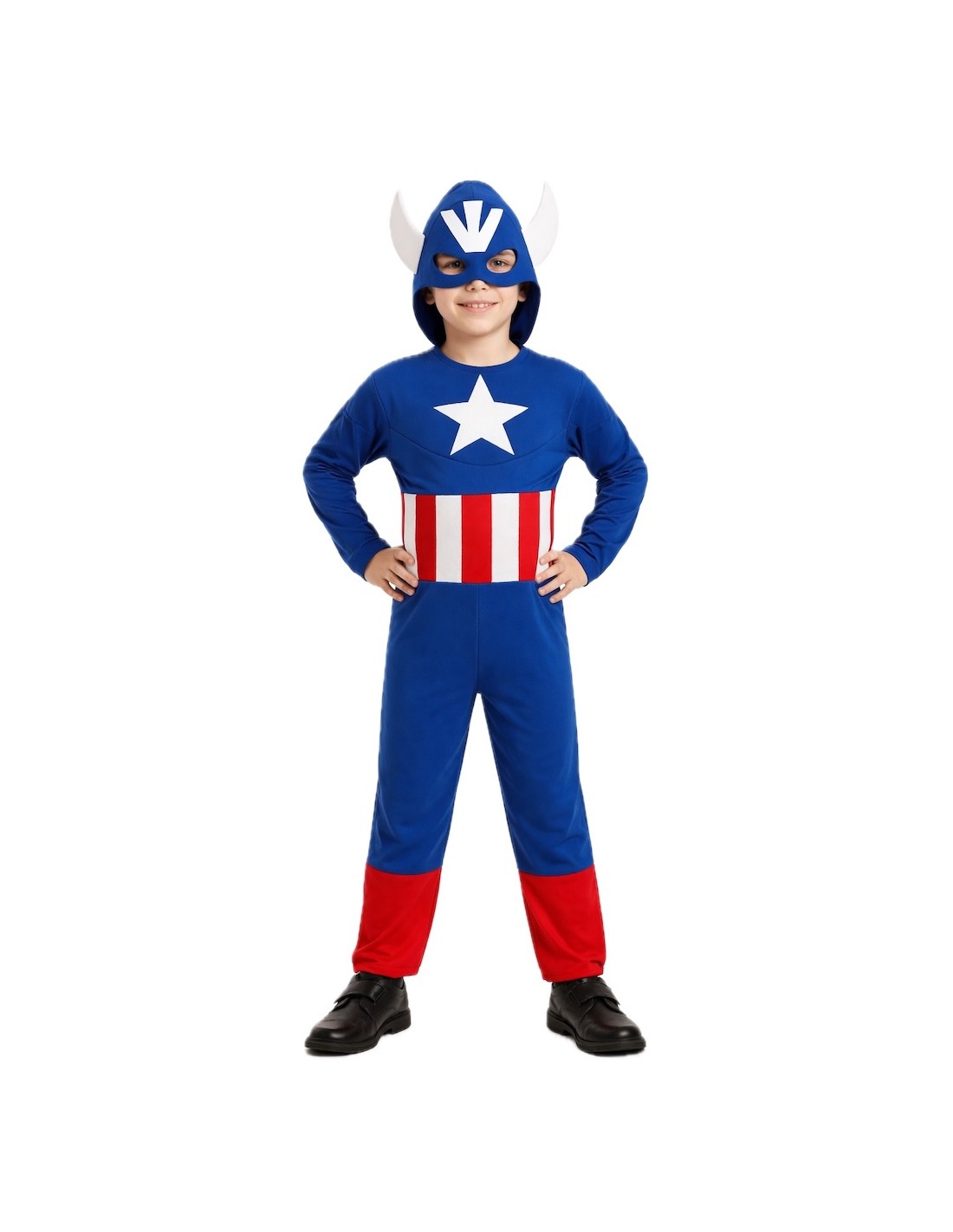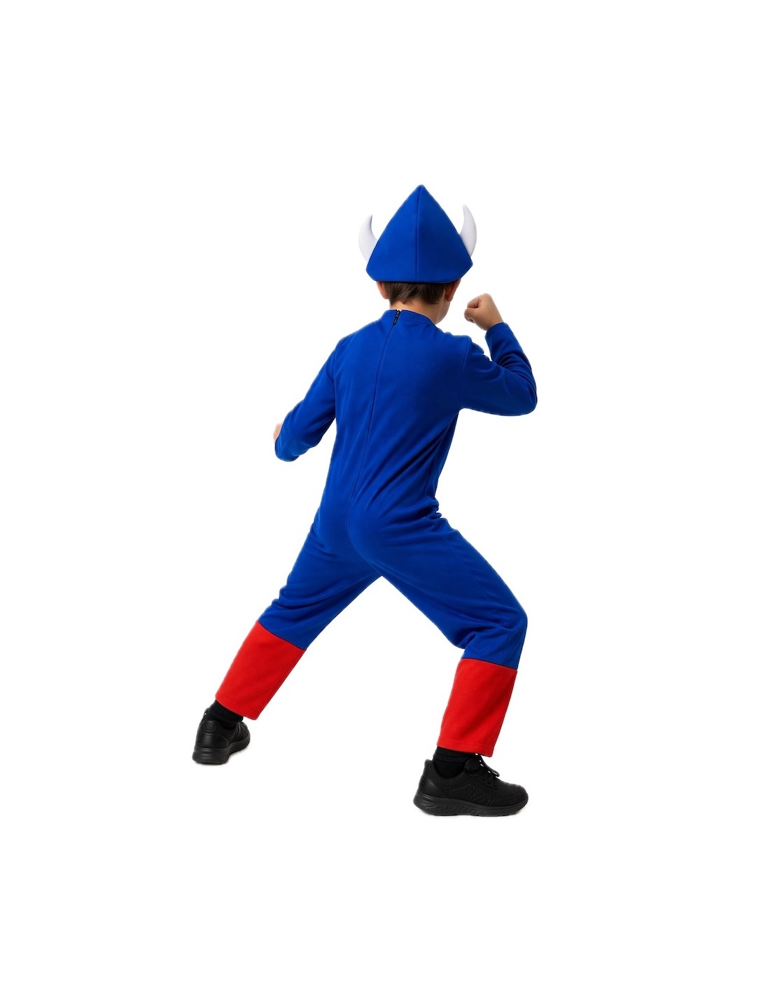 Inclui um macacão confortável de malha suave com zíper invisível nas costas e no zíper para maior conforto. O peito e os ombros são acolchoados para um efeito musculoso realista, com uma peça de feltro espesso na frente presa à peça, que decora o traje com estilo. Completo com um capacete chamativo com chifres, tudo em espuma para manter sua forma e estrutura. Um conjunto espetacular e confortável para brilhar como o herói de qualquer aventura!