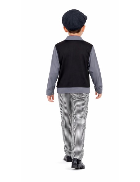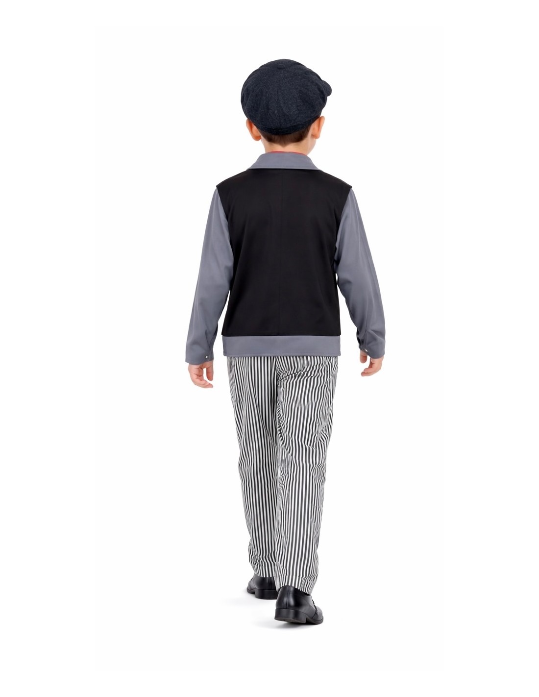 Fato completo de limpador de chaminés com camiseta de malha suave de máquina semielástica e colete integrado em tecido de amelocotonado, dando o efeito de duas peças em uma. Calças combinando com elástico na cintura para maior conforto e pequeno bolso interno. Inclui lenço no pescoço e boné, ambos de toque amelocotonado; o boné é franzido com aba fofa para manter sua forma. Um conjunto confortável e cheio de detalhes para um visual autêntico.