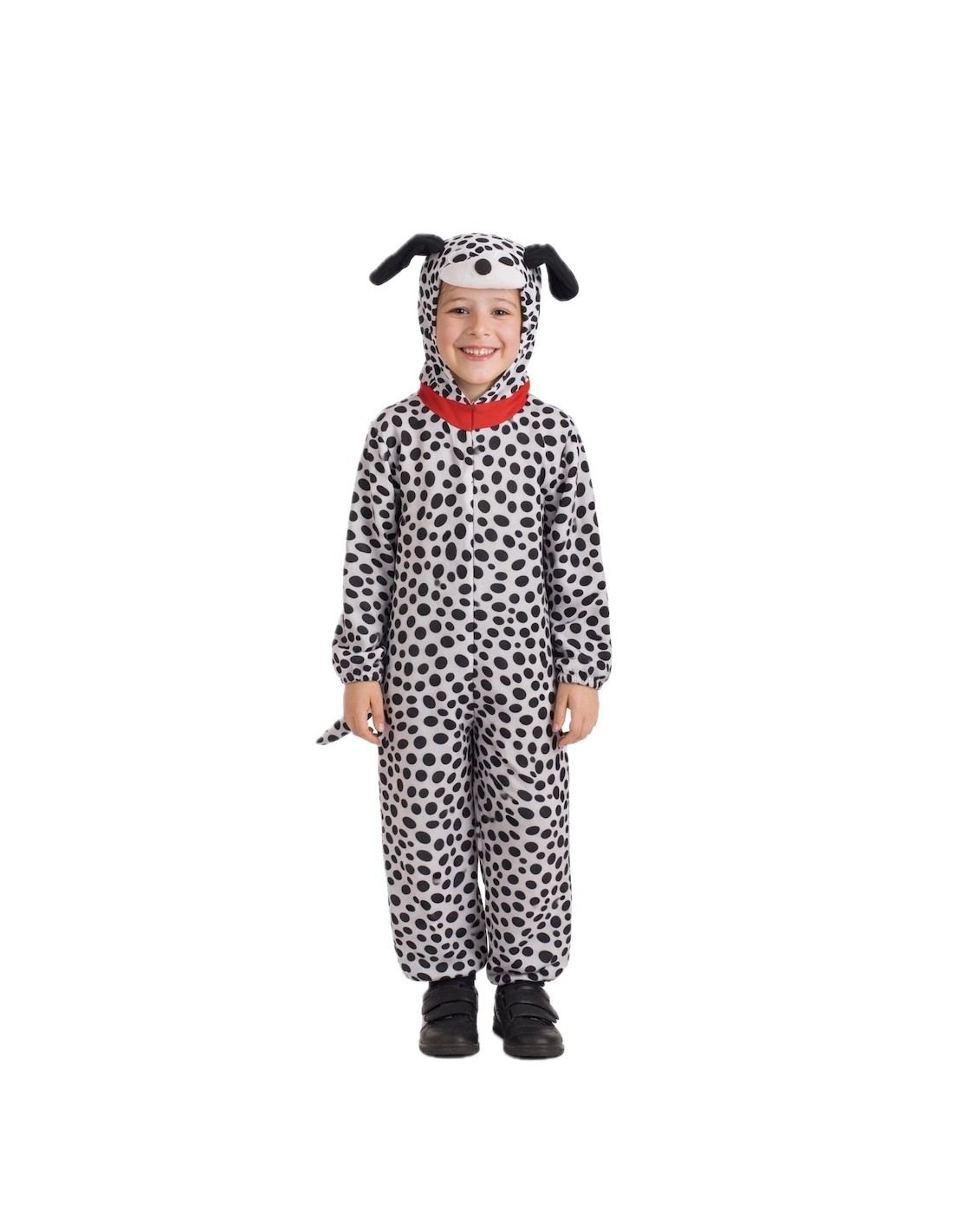 Esta fantasia de dálmata destaca pela sua confeção confortável, suave e de excelente qualidade, perfeita para desfrutar sem limites. Trata-se de um macacão em tecido de toque aveludado, com fecho frontal invisível e elásticos nos pulsos e tornozelos que garantem um ajuste prático. A cauda traseira é presa com velcro para cumprir as normas de segurança. O capuz integrado, com elástico em torno do rosto, proporciona suporte e realismo, enquanto o focinho espumado oferece um efeito tridimensional muito divertido. Os detalhes, como os olhos em feltro denso e resistente, são cuidadosamente aplicados ao tecido. A joia da fantasia é, sem dúvida, o seu acabamento suave e agradável ao toque, que torna este conjunto numa peça tão confortável quanto querida. Um traje quente, resistente e simpático, ideal para o Carnaval, desfiles e festas temáticas onde a diversão é garantida.