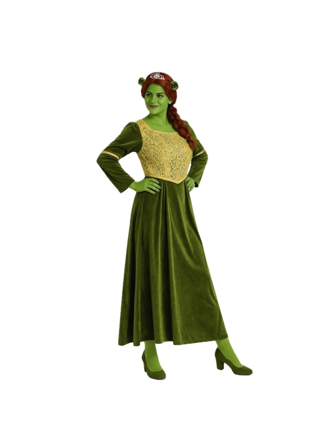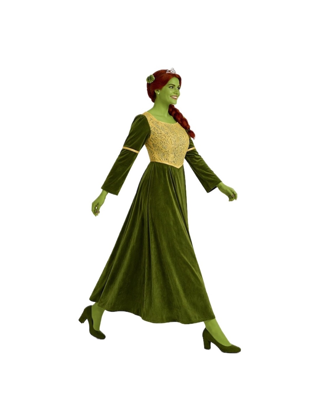 Fantasia encantadora perfeita para se transformar em uma ogresa divertida e elegante. Inclui um lindo vestido de veludo macio com decote quadrado, elástico nas costas para um ajuste confortável e detalhes em tecido brocado dourado que realçam o corpo e as mangas, decorados com delicadas passamanarias. Completa-se com uma tiara com orelhas de veludo esponjoso, com estrutura para manter sua forma perfeita. Uma fantasia original, confortável e cheia de detalhes!